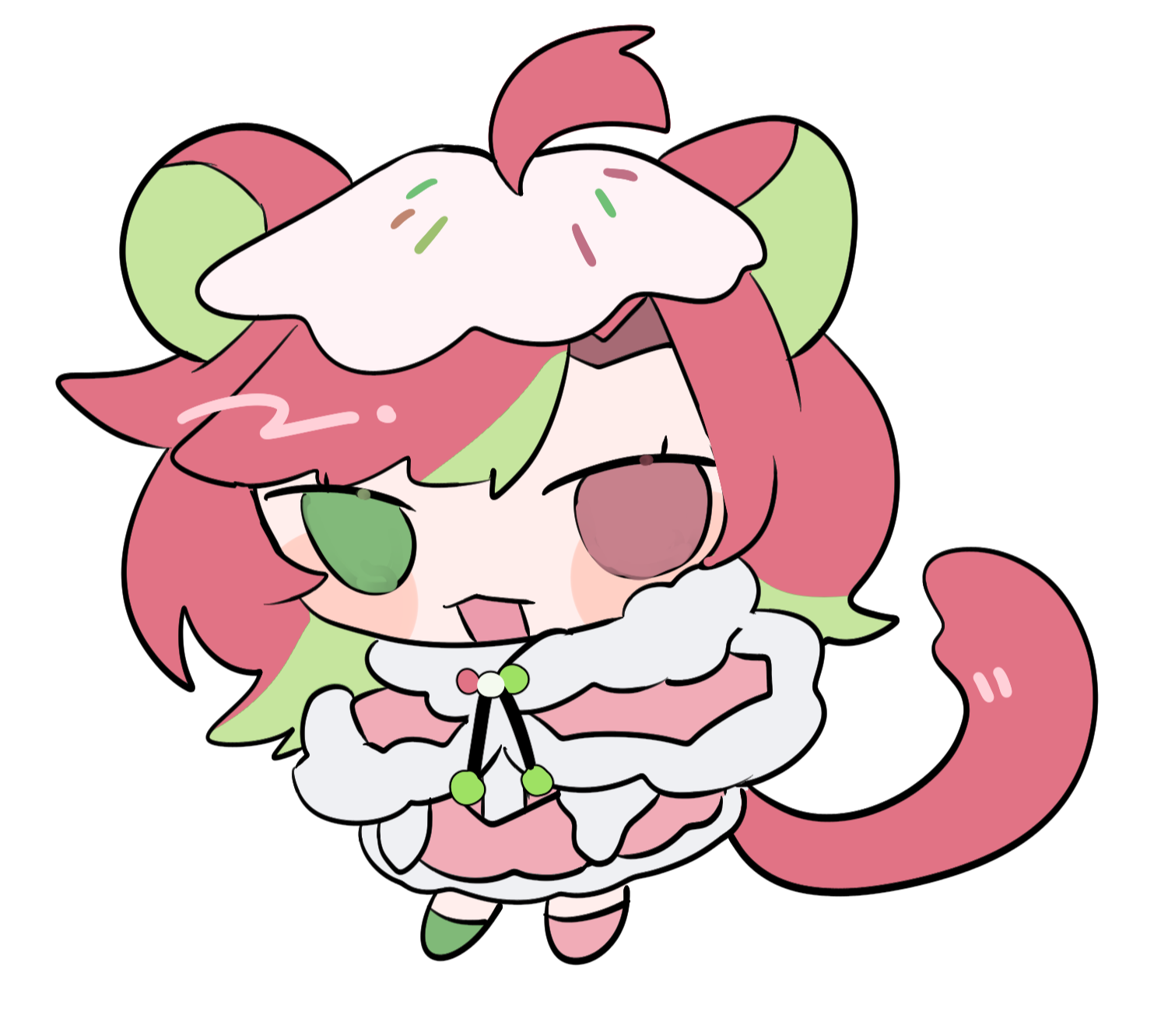 Kekeke! Welcome to DigiDessert Studios! My name is Slinkee, spelled s-l-i-n-k-e-e, with two e's! I am the mascot of DigiDessert Studios! I keep everyone motivated and remind the team to take care of themselves! Don't tell anyone.. but sometimes I slump under the counter to sleep.. working this job is no easy task, yknow? Anyway, I'm more than happy to take your order, so please let me know when you're ready - kekeke!